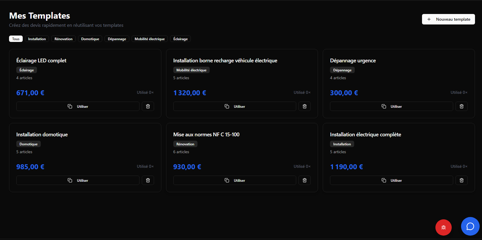 Des templates pré-configurés par métier.Personnalisez en 1 clic, réutilisez à l'infini.